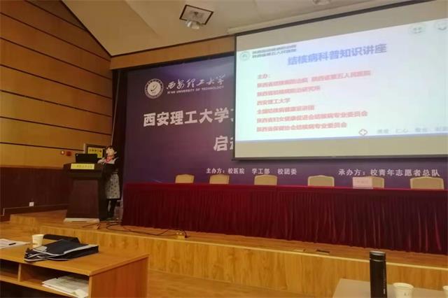 为进一步加强高校防治结核病宣传教育工作,向在校师生普及结核病相关知识,提高师生预防结核病知识水平,12月4日,由西安市理工大学校团委、校医院、绿窗协会等部门成立的西安理工大学艾滋病知识宣传“百千万校园行”活动启动仪式暨传染病知识讲座在理工大举行。我院副院长仵倩红受邀赴理工大为师生们进行结核病防控知识宣讲,该校200余师生到场聆听。