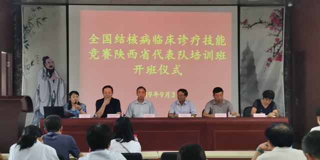 为激励广大结核病诊疗医务人员工作积极性,提高全省结核病定点医疗机构的诊疗能力,根据国家卫健委疾控局《全国结核病临床诊疗竞赛方案》和省卫健委《关于开展全国结核病临床技能竞赛参赛人员集中培训及比赛的通知》安排,我院于2019年9月3日举行了全国结核病临床诊疗技能竞赛陕西省代表队培训班开班仪式。