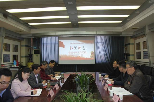 随后甘昭平书记就我院扫黑除恶专项斗争工作从会议部署、专项方案、目标任务、宣传动员、督导检查、医警联动等方面做了汇报。汇报结束后,督导组四位专家分组与主要领导座谈交流、查看本底资料、在对应职能科室负责人陪同下检查走访了我院门诊楼、内科病房楼、应急救援基地、医务科、保卫科,并进行了现场提问。通过审核资料、个别谈话、现场查看和提问等形式全面评估我院扫黑除恶专项斗争工作。 检查结束后,督导组在会议室对检查结果进行了现场反馈。冯光组长对我院在扫黑除恶宣传动员、医警联动、专项工作应知应会知晓方面做出的努力和成效表示了肯定。也对涉黑涉恶线索排查、宣传标语内容等细节提出了改进建议。甘昭平书记现场表态,对督导组提出的问题,我们将第一时间整改。我院将以此次督导检查为契机,加大宣传力度和氛围,进一步强化扫黑除恶专项斗争工作力度,将扫黑除恶专项斗争在医院得到充分的落实,维护和谐的患者就医和从业环境,为“健康陕西”建设做出积极的应有的贡献。