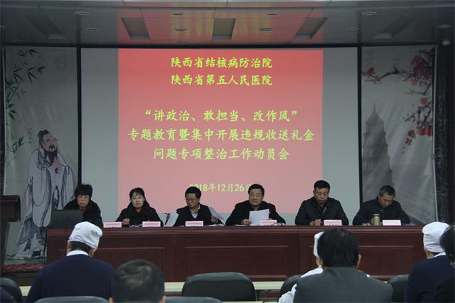 会上,高彦斌副院长组织学习了我院《关于印发< 讲政治、敢担当、改作风”专题教育的实施方案>的通知》(陕结院党发〔2018〕19号);仵倩红副院长组织学习了我院《关于集中开展违规收送礼金问题专项整治工作的通知》(陕结院党发〔2018〕21号)。 党委书记甘昭平就我院开展“讲政治、敢担当、改作风”专题教育暨集中开展违规收送礼金问题专项整治工作作了动员讲话,一是要提高政治站位,深刻认识开展专题教育的重要意义。开展“讲政治、敢担当、改作风”专题教育是省委作出的一项重大部署,目的是为了深入学习贯彻习近平总书记关于秦岭北麓西安境内违建别墅问题重要指示批示精神,全面落实《中共中央办公厅关于陕西省委、西安市委在秦岭北麓西安境内违建别墅问题上严重违反政治纪律以及开展违建别墅专项整治情况的通报》要求,推动全面从严治党向纵深发展。紧紧围绕“讲政治、敢担当、改作风”主题,坚持政治站位,突出问题导向,把思想教育和整改落实结合起来,引导全院干部深刻汲取秦岭北麓西安境内违建别墅问题的教训,进一步树牢“四个意识”,坚决做到“两个维护”,以更加坚定的态度、更加强烈的担当、更加务实的作风贯彻落实党中央决策部署和省委、省政府和省卫健委党组的工作要求和任务上来。二是开展违规收受礼金问题专项整治,是夯实管党治党责任、推动全面从严治党向纵深发展的重要抓手。党的十八大以来,党风廉政建设和反腐败斗争取得前所未有的成绩。但“四风”问题由来已久、根深蒂固,一些人不再直接用金钱和常见的贵重物品行贿,而是用名贵特产、名人字画、干股暗股、内部价购房等特殊资源手段进行“雅贿”“暗贿”,企图达到“送得不动声色、收得不露痕迹”的目的。这次活动不要有侥幸过关心理,越往后处理越严;院领导和每一位中层干部都要签署承诺书,确保集中治理期间及今后不要再次发生问题;要自觉主动上缴,省纪委监委已经公布了全省统一专用账户,特别是对以前因各种原因不能自行清退的资金,要如数上缴、留好票证,以备查证;把握好时间节点;对零上交、零报告,委党组将重点关注、重点督查,并要向委专项整治工作领导小组作出说明。纪检监察部门要畅通信访举报和部门移送问题线索渠道,对违规收受礼金的问题线索,优先受理核查,坚持“收送一起查”;对不主动清退、拒不纠正的,从严惩处;对不收敛不收手、顶风违纪的,坚决按“越往后执纪越严”的要求,严查快处、绝不姑息,并一律进行通报曝光。三是要加强组织领导,确保取得实效。这次专题教育和专项整治工作,要求高、时间紧、任务重。我们一定要高度重视,切实抓好专题教育和专项整治各项工作。层层夯实责任;专题教育和专项整治领导小组是落实责任的主体,党委办公室及纪审科要做好组织协调、提醒督促、资料收集及加强正面宣传报道等工作,确保专题教育和专项整治工作不虚、不空、不偏,并取得成效。院班子成员、中层干部和护士长要自觉当好“关键少数”,积极参加并认真落实好各个环节为全院职工树好标杆、做好榜样。营造良好氛围,党委办公室和纪审科要充分利用医院网站、简报、微信等媒体平台,广泛宣传落实全面从严治党主体责任好的经验和做法,大力宣传专题教育和专项整治的重要意义,宣传工作进展和取得的成效,着力发现、挖掘一批先进典型,弘扬正能量。真正把专题教育和专项整治成果,转化为推动我院各项工作健康有序发展的强大动力,为全省结核病防治事业做出我们应有的贡献。 最后,刘锦程院长提出三点要求:一是统一思想,提高认识。院班子成员、各科室各支部要充分认识到此次专题教育的重要性和紧迫性,以高度的政治敏锐性把工作抓实、抓好、抓出成效;二是要抓住关键、突出重点。准确把握专题教育的内容要求,注意时间接点,认真查找问题,完成规定动作;三要立足常态抓成效。要在常态化上下工夫,把讲政治、敢担当、改作风落实在日常工作中,落实在具体事务中,落实在实际行动中,融入到党员干部的日常监督管理之中,确保开展“讲政治、敢担当、改作风”专题教育暨集中开展违规收送礼金问题专项整治工作取得实实在在的效果。