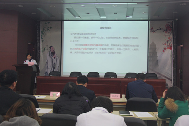 会议由仵倩红副院长主持,院领导班子成员、中层干部、护士长及全院医护人员100参加了会议。首先强调了本次汇报会的目的和要求,以及评分规则。接着由10个临床及5个医技科室的学科带头人从科室管理、学科优势、学科发展、科研学术、专科特色、人才培养、设备建设、工作质量、专科发展规划及未来的发展目标等方面做了详细的汇报,汇报紧扣本学科的实际情况,充分展现了各学科的特色及优势。