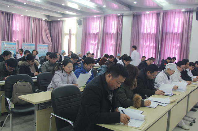 我院领导班子和中层干部、护士长、副高及以上职称技术人员参加会议。