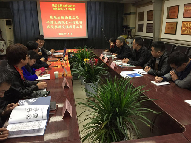 平措扎西院长介绍了西藏三院基本情况,作为西藏自治区首家传染病院,三院担负着全自治区结核病防治的重任。陕西省新型结核病防治模式和结核病医联体医院联盟对西藏结核病公共服务建设方面有许多值得借鉴之处,就加强医院之间的业务协作、人员培训作了充分协商。平措院长表示,回到西藏后要将陕西经验向上级领导汇报,希望我院在业务技术、人才支持等方面加强协作,同时向我院在2016年11月至2017年7月对口协作派驻专家——检验科主任技师王智存表示感谢,他实实在在的帮助三院检验科提高业务水平,好多业务工作开展填补了三院的检验项目空白。