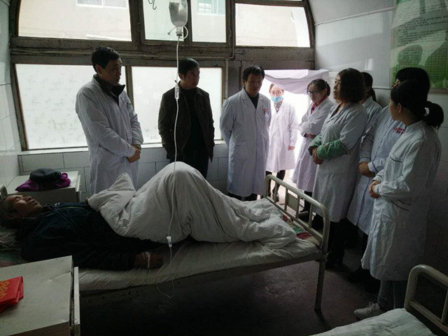 刚一进村,专家们就冒着雨,踏着泥泞的山路到贫困户家中为患者进行了诊疗查体,为贫困户宣讲健康扶贫政策,并开展了疾病预防宣传,发放健康宣传资料。随后,医疗专家组来到石湾镇卫生院,与卫生院全体医护人员就有关医护方面的知识采取面对面的现场示教、交流、答疑等互动;对卫生院现有的涉“内、外、妇” 科7名住院患者组织专家进行了医疗教学查房;为一名外科骨折病人进行了技术性指导处理,并对常见病的诊断及处理开展现场授课式指导等。