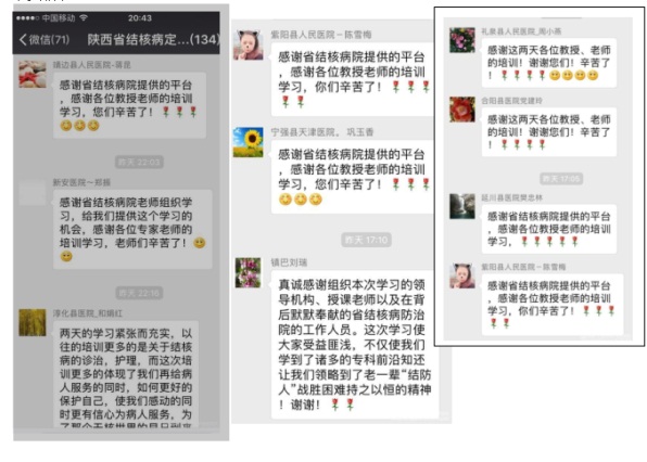 刘锦程院长说: 陕西省结核病防治院按照省卫生计生委部署,已举办全省各级结核病定点医院执业人员培训班13期,近2300人接受了专科理论和操作技术培训。2017年主办陕西省结核病定点医院护理、院感培训班暨继续教育项目,是我省进一步推动新型结核病防治管理模式的重要举措,是深入落实国家及省结核病分级诊疗的要求,是加强我省各级定点医疗机构专科及专科门诊医护及全科医生在结核病首诊中的诊疗能力,做到结核病早发现早治疗,从而提高陕西省结核病的治愈率,降低结核病发病率。 陕西省结核病分级诊疗有效实施,需要更多的专科技术人才。近年来,省结核病防治院克服困难,邀请全国结核病首席专家首都医科大学附属北京胸科医院原院长端木宏谨,初乃惠等专家教授组成讲师团,持续开办各类不同层级的专科培训班,保证各级结核病定点医疗机构及时学习掌握结核病国际国内最新理念和技术、定期安排我院结核病专家前往陕西省结核病医院联盟单位,结核病定点医疗机进行业务指导和交流、构搭建陕西省结核病远程会诊中心,为市县,镇村结核病专科医护、全科医生进行业务学习,解决疑难病例提供支撑帮助,解决基层患者看病远,看病难等问题。