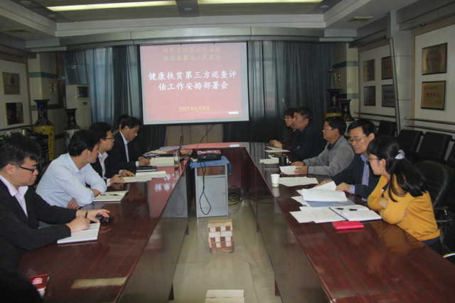 5月8日上午,我院在行政楼会议室召开健康扶贫专题会议,安排健康扶贫巡查第三方评估工作,院领导、行政中层干部参加会议,会议由甘昭平书记主持。 会上,高彦斌副院长组织学习《陕西省卫生计生委办公室关于开展健康扶贫巡查第三方评估工作的通知》(陕卫办规划函【2017】327号)及传达5月5日下午举办的委直单位扶贫工作会议有关精神。 甘昭平书记指出:开展扶贫工作,为确保2020年全民一起奔小康的目标任务是中央的战略部署,目前扶贫工作进入攻坚阶段,也是到了要啃硬骨头的关键节点,各级领导干部要站在对人民群众深厚感情的高度来开展扶贫工作。对本次开展健康扶贫第三方巡查评估工作进行部署并提要求:一是要深刻领会脱贫攻坚的重大意义,要讲政治、顾大局,切实把思想和认识统一到中央和省委省政府关于打赢脱贫攻坚战的要求上来。二是成立组织;成立以院班子成员带队的二个工作小组,每组四人,确定联络员,按评估任务每组完成榆林市三个县,六个村扶贫第三方巡查评估任务,共计6个县12个行政自然村的扶贫评估信息采集。三是参加巡查评估人员积极参加省卫计委组织的下午培训会,熟悉工作内容、流程。四是会后各小组召开见面会,做好人员分工;要注意工作细节,逐户走访,摸清底数,确保真正贫困户一个都不漏;要建立巡查台帐,为精准对口帮扶提出有针对性的建议或意见,为下一步的健康精准扶贫打好坚实的基础。五是做好车辆及经费保障,各组外出时注意出行安全,随时保持通讯畅通,严格执行中央八项规定,不得增加当地负担,严格财经纪律。六是做好影像采集及信息工作报道。