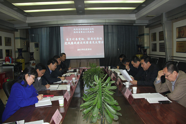 2017年3月29日,根据委党组工作计划安排,省卫计委刘岭副主任和驻委纪检组李宏杰组长一行5人在我院召开党风廉政建设巡察工作反馈会。会议由甘昭平书记主持,医院领导班子成员及相关职能科室负责人参加会议。