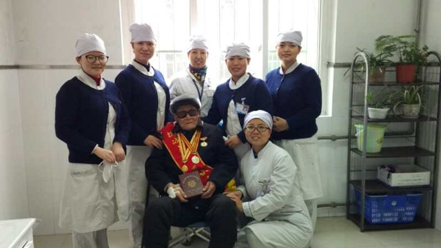 老人虽年近百岁,但仍耳聪目明、开朗健谈,经常对医护人员提起抗战期间的事情,高兴时还会说几句日语、蒙古语甚至唱起革命歌曲,最让老人自豪的是去年国务院给他颁发的纪念抗日战争胜利70周年的纪念章,老人将它视如珍宝,一直佩戴在胸前,每一位医护人员都被老人的爱国激情深深地感染着。