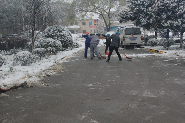 为保障患者、职工出行安全,方便患者就医,22日下午3点,党委书记甘昭平主持召开行政中层干部工作会议,就清扫院内积雪进行了详细的工作布置。会后,甘书记带领院办、党办、总务等行政后勤部门的全体干部职工,迎着风雪,带上工具,清理院内积雪。职工们相互配合、团结协作,有的手拿铁锹,有的手拿扫把等清雪工具,忙碌扫雪的身影构成了一道靓丽风景线。经过近两个小时的共同努力,清扫出工作区的车行道、人行道及工作区主干道通往院外的道路,保障了院内道路的畅通,排除因为大雪而带来的不便,为前来就诊的患者提供了一个安全的就医环境。