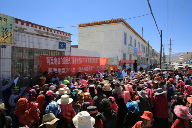9月7日,陕西省第二批组团式援藏医疗队,在阿里地区卫生局的带领下,对阿里地区革吉县卫生服务中心开展下乡义诊活动。经过150公里的山路长途跋涉,医疗队来到了革吉县城的卫生服务中心,当地的藏民同胞已经在门口等候排起了长龙,对于仅有1.4万人的革吉县来说,这种火热的场面真是很难得。经过短暂的准备之后,医疗队员立即投入工作,内、外、妇、儿、口腔、检验、B超、放射各科专家齐上阵,在义诊活动现场“测血压、健康咨询、发放健康教育宣传册和诊治”的藏民络绎不绝,专家详细询问病情并做细心解答,对需要药物治疗的,免费送药,做到让每一位前来就诊的藏民满意。在平均海拔4500米的高海拔地区,持续义诊活动持续近六小时,这不仅是考验身体的适应度,更是对心理承受能力的挑战,大家虽然都已经又累又饿,可所有人都感觉很满足。
