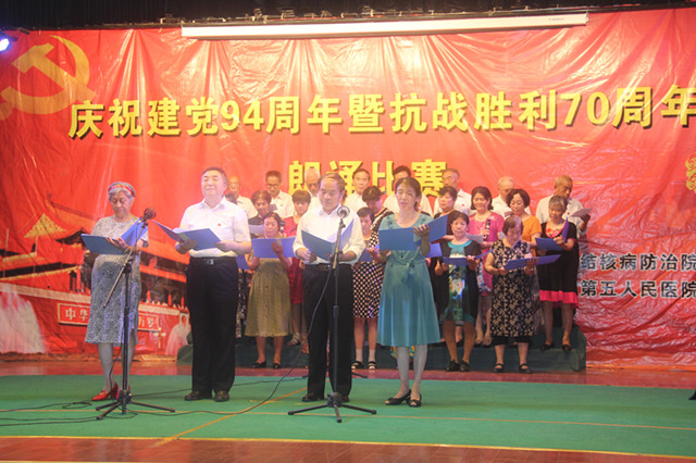 6月29日下午,我院在西院多功能厅举办了庆祝建党94周年暨抗战胜利70周年朗诵比赛,院领导班子及党员、职工共计130余人参加了会议。庆祝表彰会议由刘锦程院长主持。
