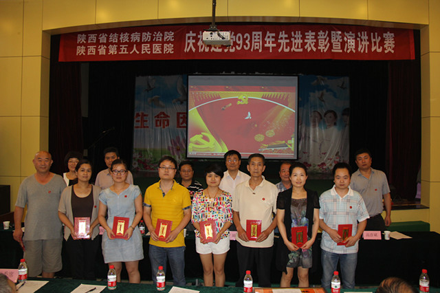 表彰会上,进行了预备党员在党旗下宣誓仪式,全体党员重温入党誓词;宣读了《中共陕西省结核病防治院委员会关于表彰2013年度先进基层党组织、优秀党务工作者和优秀共产党员的通知》,经各支部推荐并经党委会研究,对临床第一、第二支部、王新宏等4名优秀党务工作者、李娜等9名优秀共产党员予以表彰。预备党员代表杨英、优秀党员代表李娜、优秀党务工作者代表白广红做了发言。