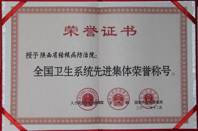 根据人力资源和社会保障部、卫生部、国家中医药管理局《关于评选全国卫生系统先进集体先进工作者及“白求恩奖章”获得者的通知》(人社部函〔2012〕165号)文件精神,省卫生厅经过逐级推荐、审核、集体研究等程序,最终将我院确定为全省先进集体单位之一,并推荐上报卫生部。2013年1月7日上午,在北京召开的全国卫生工作会议上,我院被授予“全国卫生系统先进集体”荣誉称号。我院院长刘锦程上台领奖,卫生部陈笠部长为我院颁奖。 本次评选活动由人力资源和社会保障部、卫生部和国家中医药管理局联合组织,旨在表彰先进,弘扬正气,激励全国卫生系统广大干部职工更好地为人民健康服务。希望广大干部职工要珍惜荣誉,再接再厉,扎实工作,更好地发挥先进示范作用,忠诚履行为人民健康服务的神圣使命,为卫生事业改革和发展再立新功。