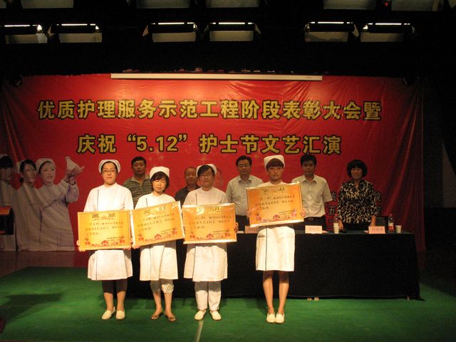 美丽的五月,以饱满的姿态向我们走来,恰似一阵春风,吹绿了大地,吹艳了花儿。在这样如花的五月,一年一度的“5·12”国际护士节即将到来。为纪念“5·12”国际护士节,表彰在“优质护理服务示范工程活动”中涌现出的先进集体和个人,5月8日下午,我院在西院多功能活动厅举行了优质护理服务阶段表彰大会暨庆祝“5·12”国际护士节文艺演出活动。医院党政领导班子成员、中层干部、各科室护士等百余人参加了此次活动。 会议由分管副院长牛国强主持,院党委副书记、院长刘锦程,副院所长郭皖营,副院长高彦斌,总会计师汪贵英应邀参加了活动。 会上,护理部主任李凤娟总结汇报了两年来“示范工程”活动取得的成效,分析了当前工作中存在的问题,围绕“夯实基础护理,提供满意服务”的核心任务提出了下一步工作计划。副院所长郭皖营宣读了“优质护理服务示范工程”先进科室及先进个人表彰决定,院领导为获奖科室及个人颁奖。“优质护理服务示范工程”先进科室护士长代表张宁就科室的开展情况、取得成效及下一步打算等方面做了汇报。“优质护理服务示范工程”先进个人代表吝昭君作为一名普通护理人员,表达了对“示范工程”活动的理解和自己感触。她们用真实的事例说明了“示范工程”活动以来,病房发生的点点滴滴变化,护士在转变服务理念的同时,从细微处入手为病人着想,体现“用情护理,用心服务,以人为本”的护理内涵。 刘锦程院长做了重要讲话。他首先代表院领导班子向全院护理人员表示了节日的祝贺,并对护理工作所取得的成绩给予充分的肯定。他还结合我院实际情况,对全院护理人员提出了四点要求,要求全院护士要树立职业的自豪感,用行动提升形象;要培养职业的责任感,用专业赢得尊重;增强职业的紧迫感,用能力获得认同;要学会享受工作和生活,学会学习。他勉励全体护士继续发扬南丁格尔精神,勤奋工作,全面提高护理服务质量,为医院发展做出新的更大的贡献。 会后,大家一起观看了精彩的文艺演出。这次演出在院领导的正确领导下,在护理部的精心安排及总务科、党办等部门的大力配合下,在十分繁忙的工作之余,由护士长带领科室护士们利用休息时间自编、自演。演出在婀娜多姿、美轮美奂的舞蹈《美人吟》中拉开帷幕,整台演出节目新颖,内容多样,有妩媚婉转的舞蹈《烟花三月》,还有甜美好听的歌曲《小背篓》;有欢快喜庆的东北秧歌《大姑娘美大姑娘浪》,还有大气磅礴的歌曲《江山》……一个月来辛苦排练的十一个节目纷纷登场,精彩的表演赢得了大家的阵阵掌声与喝彩,将喜庆祥和的气氛推向高潮。此次演出用嘹亮的歌声、优美的舞姿, 弘扬了南丁格尔精神,充分展现了我院护理人员团结一致、积极向上、快乐活泼的精神风貌。