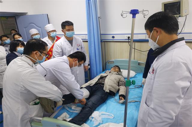 经检查,一名群众已经昏迷,心脏骤停,无自主呼吸,急救人员立即为其进行心肺复苏,5分钟后患者心跳恢复,另一名群众右侧股骨干骨折,急救人员快速为其进行患肢固定处理,随即救护车将两名受伤群众送往医院急诊科。下午3:00,2名患者抵达急诊科,此刻,各会诊科室人员已经在急诊科待命,大家根据指挥迅速进行院内抢救,重点关注昏迷患者的抢救进展,努力挽救患者生命......从院前急救到院内急救,短短半个小时,整个过程紧张有序,医护人员配合默契,节奏紧凑,围观群众无不当真,但实际上这次急救,只是一场演练。
