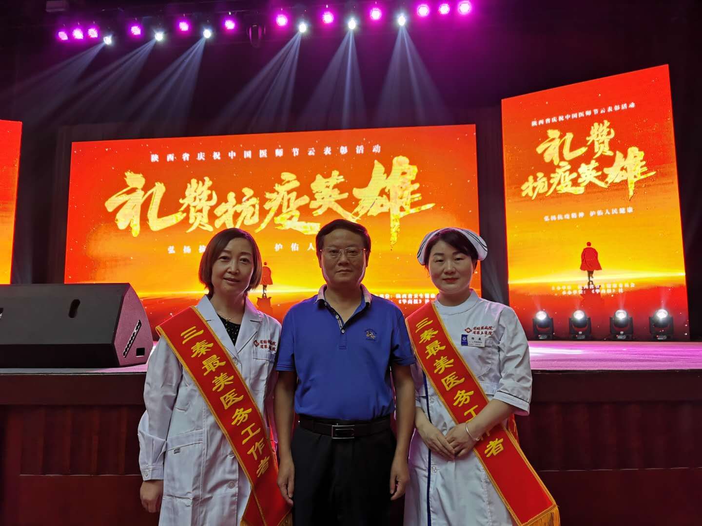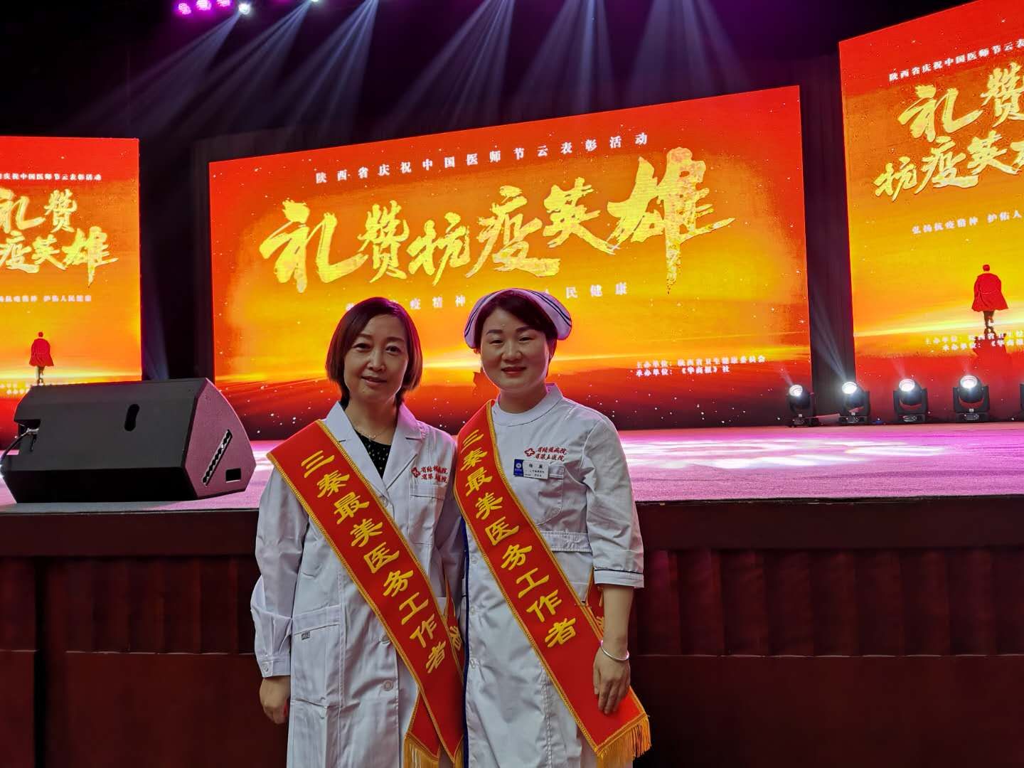 8月18日下午,“礼赞抗疫英雄·陕西省庆祝中国医师节云表彰”颁奖典礼在西安索菲特人民大厦大剧院隆重举行,陕西省结核病防治院刘红艳主任医师、杨薇主管护师同时获得第四届“三秦最美医务工作者”荣誉称号。