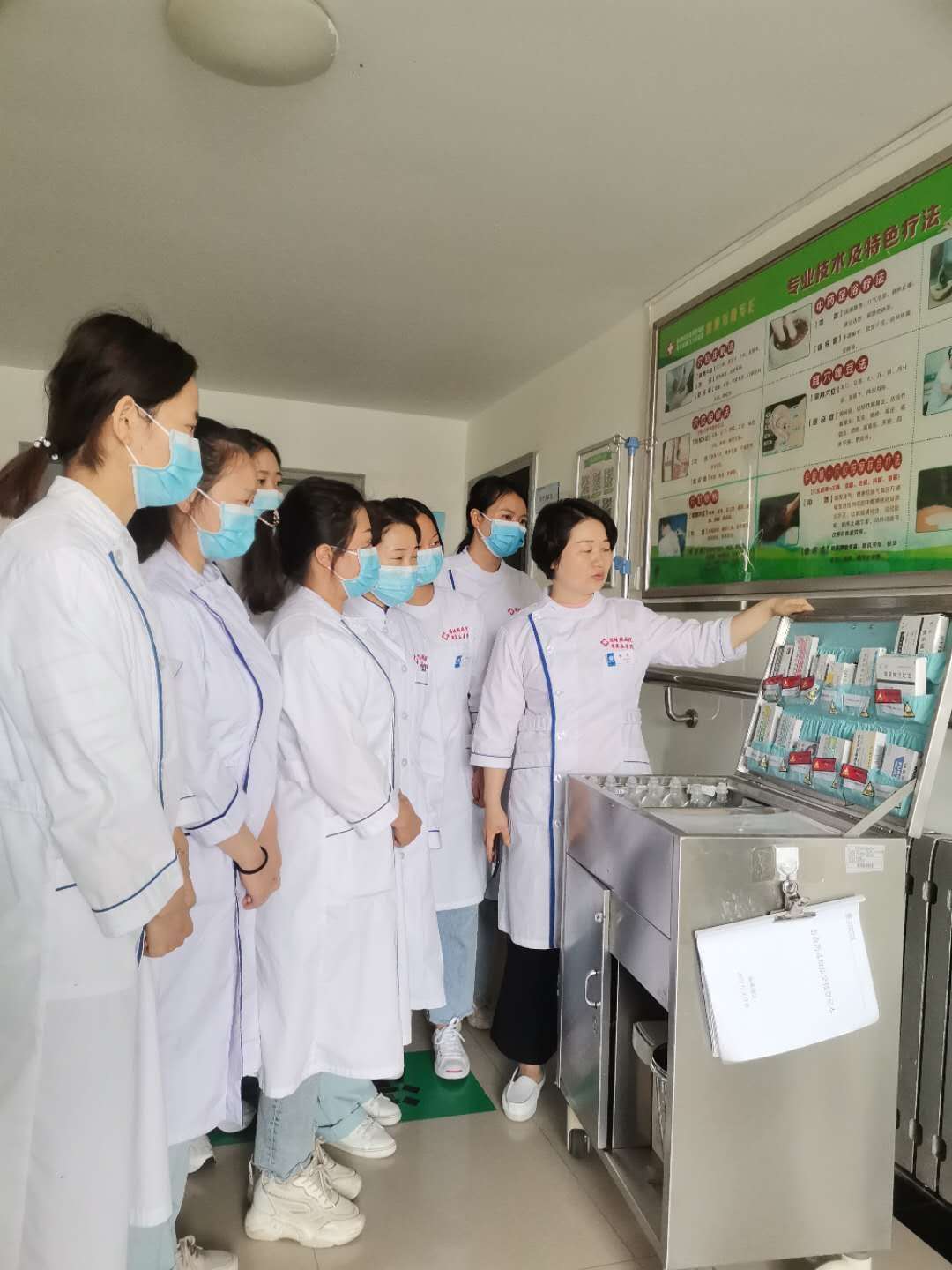 当下进入秋冬季疫情防控特殊时期,为了加强提升医护人员应急处置能力,9月23日,我院发热隔离病区开展新冠肺炎诊疗和护理技术培训,培训由国福云主任主持,护长杨薇协助演练及考核,分理论操作两部分,通过培训确保大家以饱满的精神、精湛的诊治和护理技术打好疫情防控战。