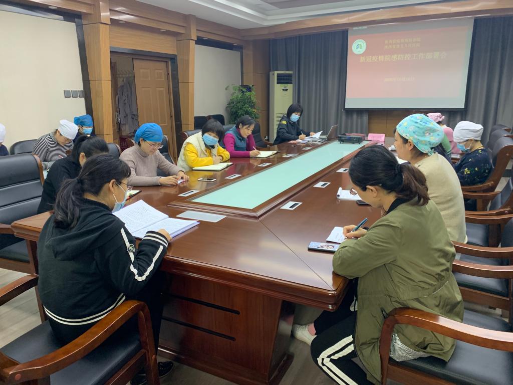 10月16日上午,陕西省结核病防治院召开新冠肺炎院感防控工作布置会议,院感染办全体成员和各临床科室护士长参加会议,副院长仵倩红主持会议。会上仵倩红副院长分析了当前疫情防控形势,通报了青岛疫情及相关文件,传达了陕西省关于进一步做好常态化疫情防控工作的相关文件精神。