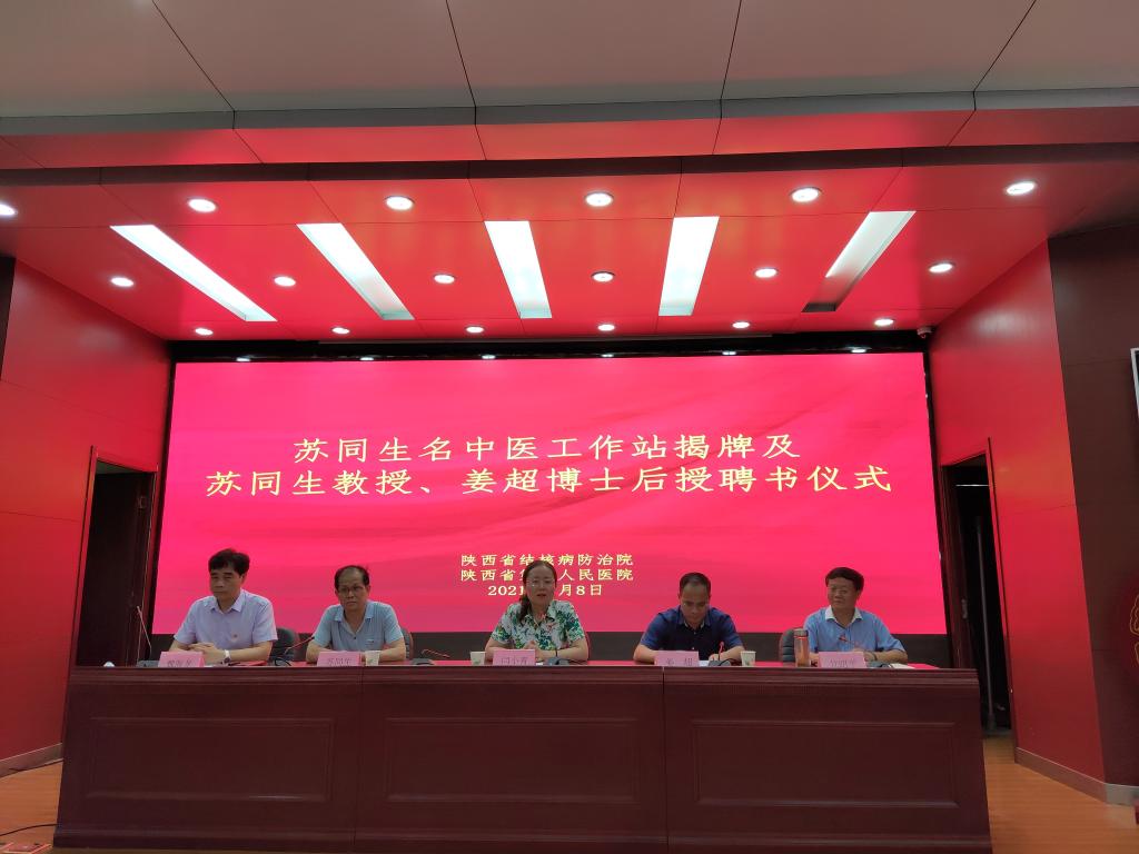 7月8日下午,苏同生名中医工作站揭牌及苏同生、姜超博士后聘任仪式在陕西省结核病防治院隆重举行。仪式由甘昭平书记主持,魏海龙院长宣布医院聘任决定。陕西省中医药管理局医政医管与教务处处长闫小青到会指导,院领导班子、机关行政科室、科主任、护长近百余人共同见证了这个载入医院发展史册的日子!