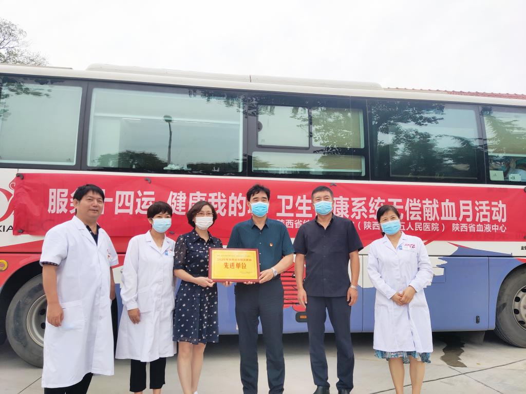 今年是建党100周年,十四届全运会也将于9月15日在西安举行,为了确保血液储备充足,保障赛事平稳顺利进行,我院积极响应西安市卫健委关于开展“服务十四运 健康我的城”无偿献血月活动的通知要求,7月15日组织医务人员开展献血活动,用实际行动支持全运、参与全运、服务全运,推动西安市无偿献血工作持续健康发展。陕西省血液中心、西安市中心血站书记陶梅对我院多年来的无偿献血工作给予了高度肯定,并向我院颁发“2020年度西安市团体献血先进单位”荣誉奖牌,魏海龙院长代表医院接受授牌。