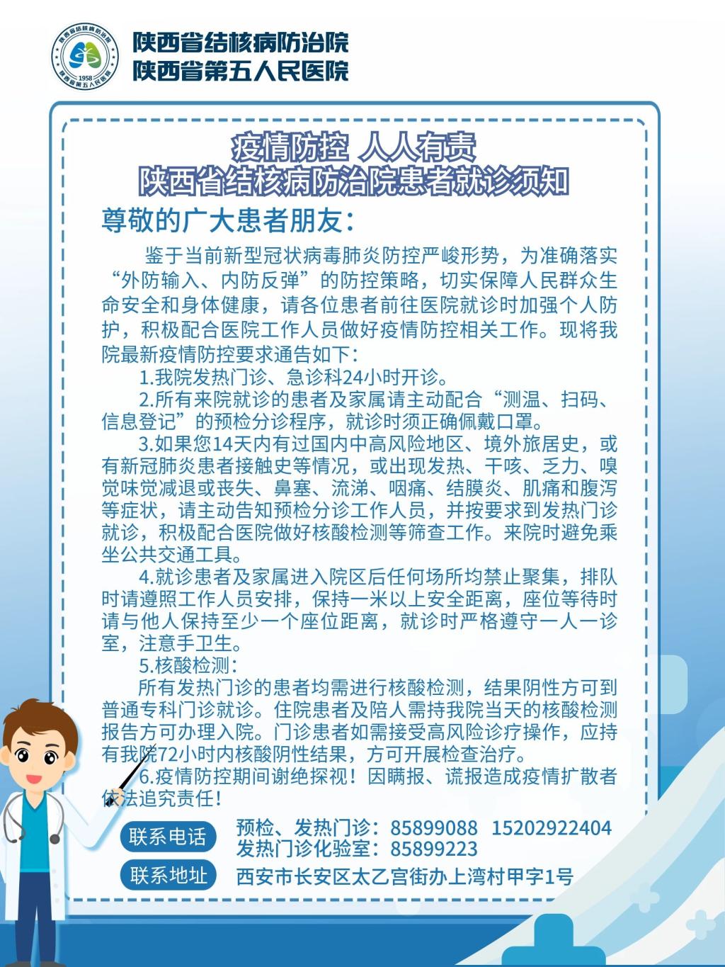 疫情防控 人人有责 陕西省结核病防治院患者就诊须知