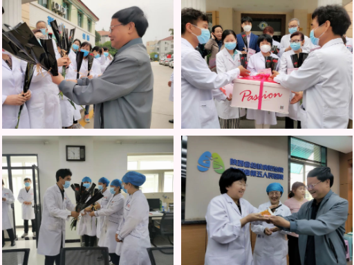 一束束鲜花,一声声祝福,是温暖更是鼓励!现场的每一位护理人员都备受感动,纷纷表示一定不会辜负医院的期望,在以后的工作中一如既往恪尽职守,服务好每一位患者。护理前辈王宝珍老师说:“这是我的第36个护士节,也是我在医院的最后一个护士节,今天收到了医院的慰问、鲜花和蛋糕,让我感受到了咱们医院大家庭的温暖,我将尽职尽责站好最后一班岗,为自己的职业生涯划上圆满的符号。”新进护士王青青开心的说:“这是我护理生涯的第一个节日,收到院领导送给我们的鲜花、蛋糕与祝福,我觉得好开心!我会铭记这一刻、珍惜这一切,努力做好本职工作,不辜负“白衣天使”的美名,为医院的发展贡献自己的力量!”