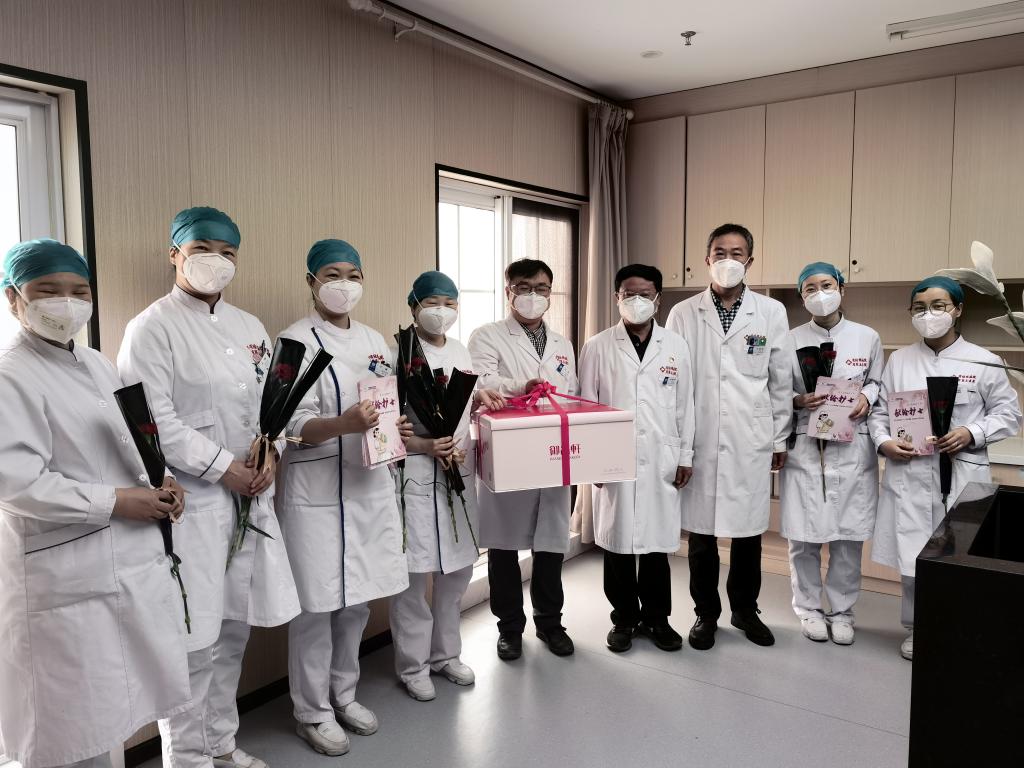 “节日快乐!”“大家辛苦了!”5月12日上午,我院党委书记甘昭平、院长魏海龙等院领导班子成员带领职能科室负责人分三组深入临床、医技、预检分诊、发热门诊、手术室、消毒供应中心等科室,为全院护理工作者送去鲜花蛋糕以及慰问信。每到一处,院领导都亲切问候着每一位护理人员,感谢他们为患者的健康和医院发展做出的辛苦努力。当天,还对2021年度3个明星护理科室、23名护理之星及4个优秀院级护理质控小组进行了表彰。其中:明星护理科室为内一科、内六科、内七科;护理之星为霍婷婷、谢秀秀、李孟娜、翟亚楠、雷艳、孟盼、董飞凤、罗珊、马云、李妍、王萌、卫雯艳、梁静、耶瑶、李巧宁、王芬、张艳利、冯欢、胡新颖、钟山山、罗延莉、凌晓妮、李佳;优秀院级护理质控小组为急救管理小组、护理服务小组、心理护理小组、糖尿病护理小组。院领导对获奖个人及团队表示祝贺,鼓励他们再接再厉,再创辉煌,同时号召全院护理人员向先进个人和集体学习,为医院发展贡献更大的力量。