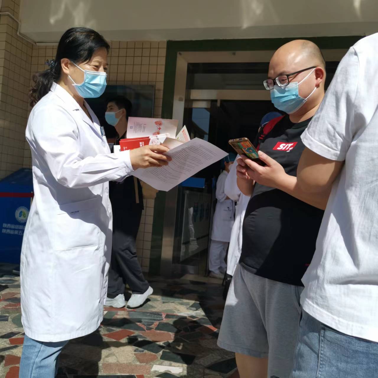 2022年6月14日是第19个世界献血者日,今年的主题是“献血是一种团结行为,加入我们,拯救生命”。血液安全事关人民群众生命健康、国家安全和社会稳定,是实现健康中国战略和医疗卫生服务体系高质量发展的重要内容。为了让更多人认识到无偿献血的必要性,提升大家无偿献血的意识,6月14日上午,我院医务科、输血科、门诊办工作人员在党委书记甘昭平的带领下举办无偿献血宣传活动。工作人员在职工群中进行了无偿献血科普知识宣教及动员,并为前来就诊患者及其家属发放无偿献血宣传资料,让大家了解献血有益于健康,呼吁符合条件的人群积极投身到献血队伍中来,用无私奉献的献血善举,拯救更多患者生命和家庭。