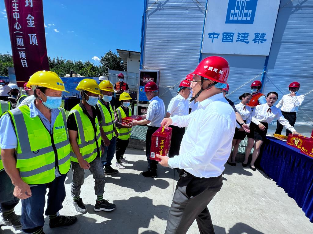 封顶仪式由党委书记甘昭平主持,院长魏海龙介绍工程建设情况并致欢迎辞,中建集团领导库学忠介绍了项目最新进度。省发改委、省财政厅、省卫健委、长安区政府、驻地街办及中国建筑第八工程局有限公司等相关单位领导嘉宾出席封顶仪式,并对项目进行实地参观、慰问工友代表。