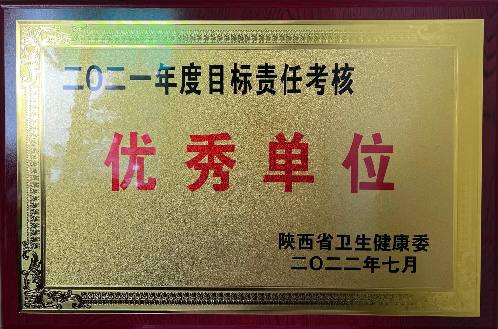 近日,陕西省卫生健康委下发了《关于表彰2021年度目标责任考核优秀处室单位和个人的决定》(陕卫人发﹝2022﹞25号),我院荣获“2021年度目标责任考核优秀单位”。
