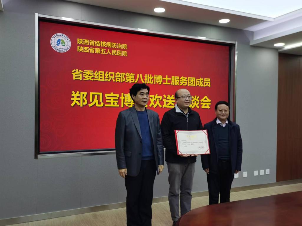 最后,甘昭平书记和魏海龙院长代表院党委为郑见宝博士颁发了荣誉证书,致敬郑博士为医院作出的积极贡献。甘书记表示,郑见宝博士为人正派、待人诚恳、作风朴实、团结同志、政治素质过硬,做事严谨认真、爱岗敬业,执行力强,值得全院各级领导干部学习。感谢郑见宝博士为我院发展作出的突出成绩,希望郑见宝博士回单位之后,能够继续关注我院的改革与发展,积极充当与交大一附院的纽带,希望两院多交流、多沟通,结合工作实际加强业务合作,同时祝愿郑见宝博士在今后的工作岗位上取得更大的进步和成绩!