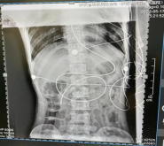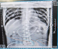 图为术后两名患者的床旁腹部平片检查结果,显示位置良好