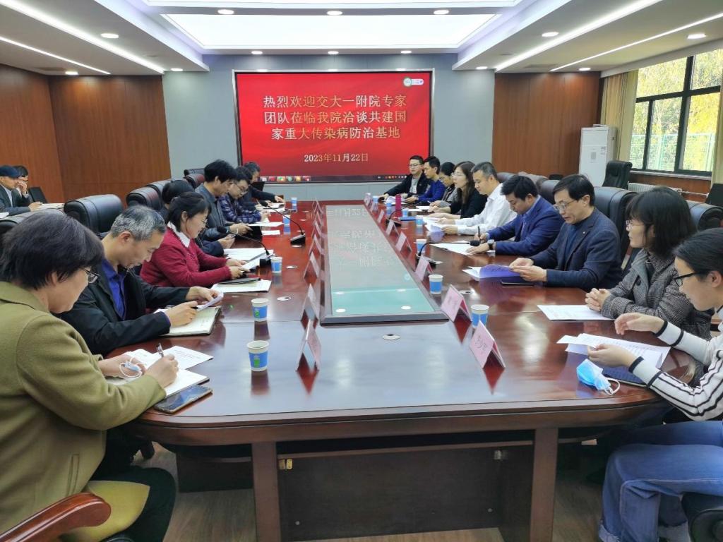 为加快推动国家重大传染病防治基地建设,助力构筑陕西重大传染病防治屏障,11月22日,西安交大一附院副院长李磊带领感染科、学科办、医务部等部门10名专家到我院座谈交流,就合作共建事宜交换意见建议。