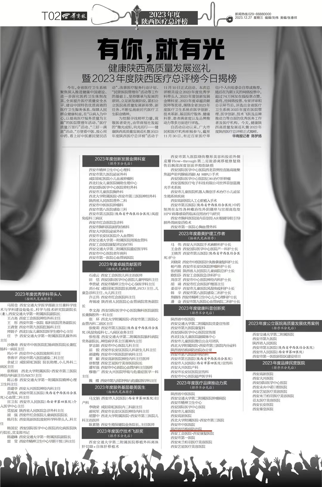 我院喜获2023年度陕西医疗总评榜两项殊荣