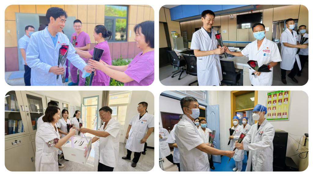 此外,院领导班子上午带队深入医院各临床、医技科室为奋战在一线的医师们送上了蛋糕、鲜花和诚挚的节日祝福。每到一个科室,院领导都与医师们进行亲切的交流,对他们在医疗工作中付出的艰辛努力和取得的丰硕成果给予了充分的肯定与高度的赞扬。