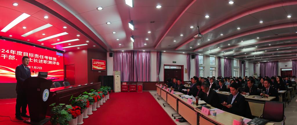 岁序更替,华章又新。为全面总结医院过去一年的工作,展示各科室的业绩亮点、问题短板,谋准谋实新年度发展大计,2025年1月2日,我院召开2024年度院内目标责任暨中层干部述职测评大会,会议由王海明副书记主持,院领导班子成员、中层干部、护士长、高级职称人员参会。