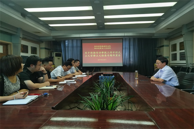 根据省卫健委《关于着力整治综合监督单位信访举报中形式主义官僚主义问题的通知》(驻陕卫纪监函〔2019〕29号)要求,结合我院工作实际,8月30日上午组织迎接检查专题布置会。会议由甘昭平书记主持,部分行政科室负责人参加会议。