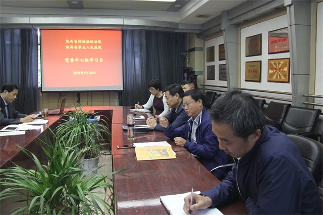 2018年9月25日下午,我院在党委书记甘昭平主持下召开了中心组集中学习会,党委办公室、院办、纪审科、人事科负责人列席了会议,会上学习了《中国共产党纪律处分条例》修改的部分内容和省纪委驻卫生计生委纪检组《关于在中秋国庆期间开展贯彻落实中央八项规定精神监督检查工作的通知》(驻陕卫纪发〔2018〕8号)精神。