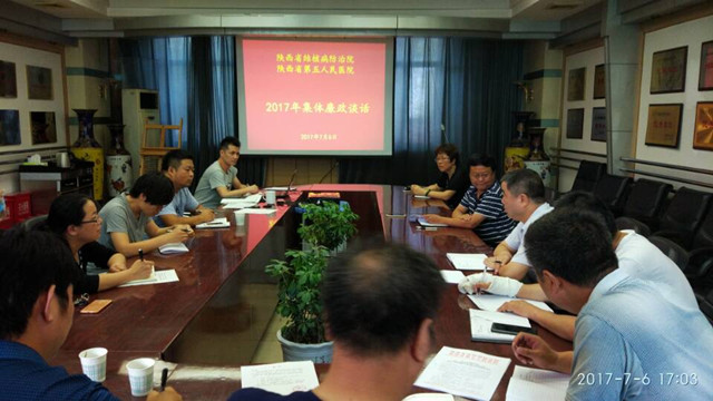 7月6日,为加强我院党风廉政建设及行风工作,进一步提高自身廉洁自律意识,强化廉洁从业,更好地为群众提供优质医疗服务,我院在行政楼二楼会议室对24名重要岗位中层干部开展集体廉政谈话。