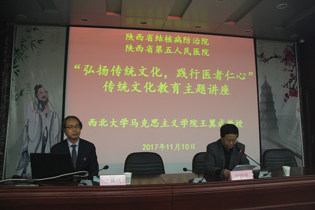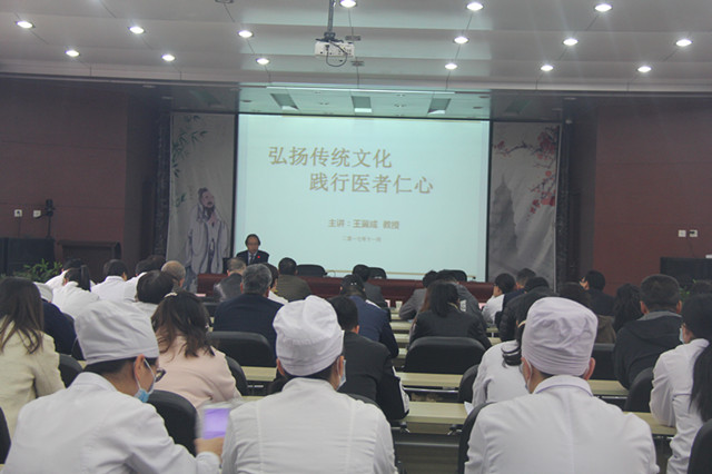 11月10日下午,我院特邀西北大学马克思主义学院王翼成教授在学术报告厅做了“弘扬传统文化,践行医者仁心”的专题讲座。讲座由甘昭平书记主持,院领导和全院职工约190人参加。