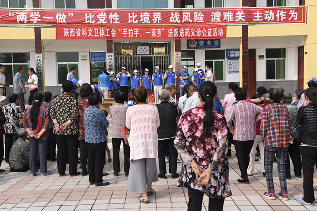 “手拉手, 一家亲”送医送药义诊活动由陕西省科文卫体工会组织,省结防院和省二院参加了这次活动。义诊活动得到咸阳市工会及旬邑县工会和所在地乡镇领导的大力支持。义诊前,举行了简朴的开幕式。卫生下乡是城市公立大医院深入农村,为老百姓养生保健服务,宣传卫生知识的重要形式。