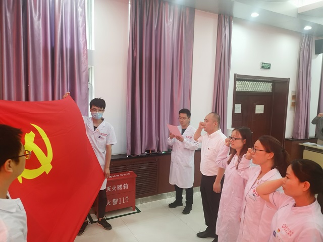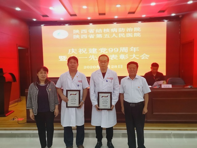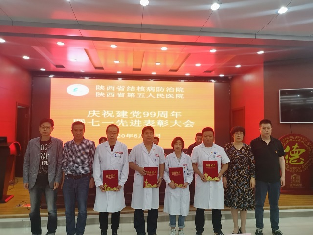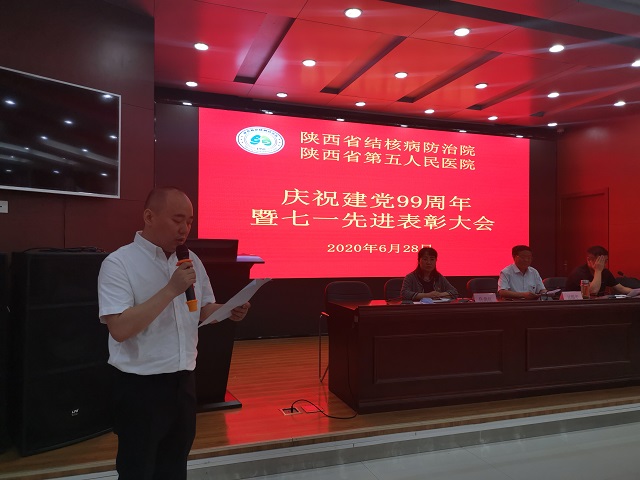 会上,全体党员起立高唱国际歌、面对党旗庄严宣誓,重温入党誓词,新入党的同志在会议上进行庄严宣誓,在援鄂期间火线入党的同志作了表态发言。高彦斌副院长宣读了中共陕西省结核病防治院委员会《关于表彰2020年度先进基层党组织优秀党务工作者优秀共产党员的通知》(陕结院党发〔2020〕19号),经各支部推荐并经党委会研究,对医技党支部、临床第一支部2个先进基层党组织,王新宏等4名优秀党务工作者,张宁等15名优秀共产党员,予以表彰。