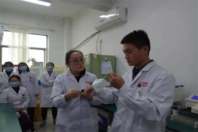 为切实提高检验科工作人员职业暴露防护意识以及科学防护,保护工作人员从业安全,检验科梁亚萍主任组织全科人员于2019年11月28日15:00在检验科门急诊进行《职业暴露针刺伤及职业防护N95口罩的正确使用》培训及演练。