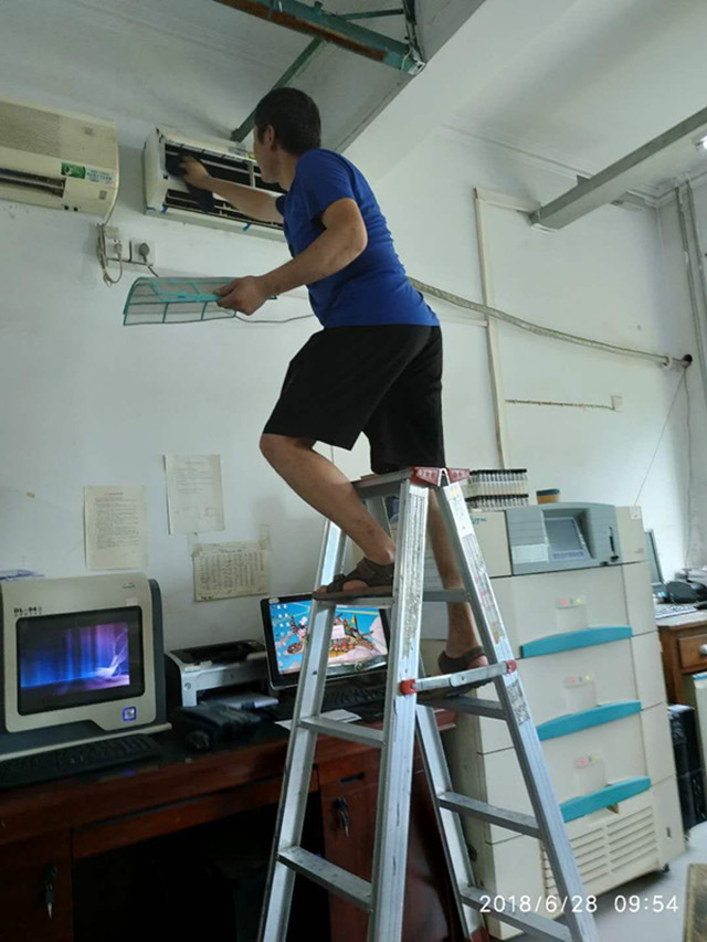 工作人员认真、彻底的清洗、检查了全院空调的内外机,保证空调的正常运行,使职工、患者在炎炎夏日中也能有一个安全、清凉的工作诊疗环境。