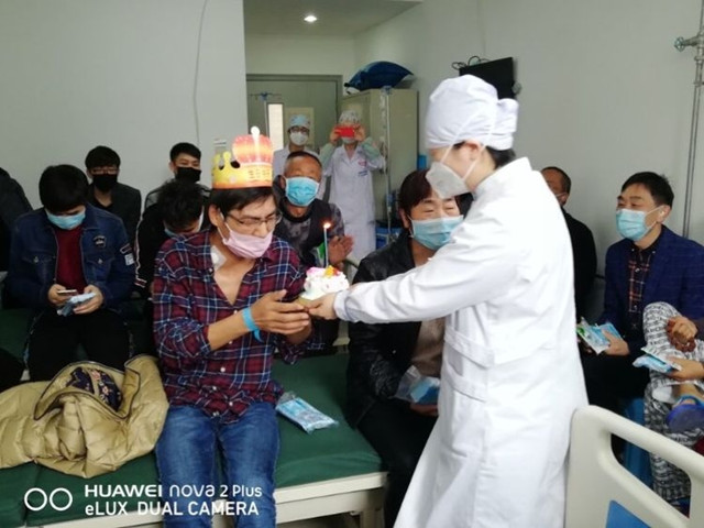 座谈会在轻松愉悦的氛围下度过,副主任耐心细致的回答每位患者提出的问题并一一解答,并鼓励患者保持良好心态,积极配合医护人员,争取早日康复。在有奖问答环节,患者热情高涨,积极回答问题,科室为每一位患者免费发放N95医用口罩。今天一位患者过生日,护士长提前准备了生日蛋糕和水果,在全科医护人员的祝福中,患者过了一个感动、温馨、难忘的生日!
