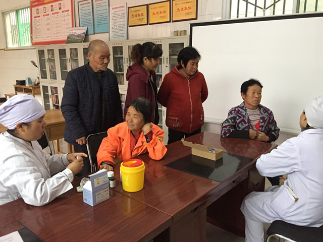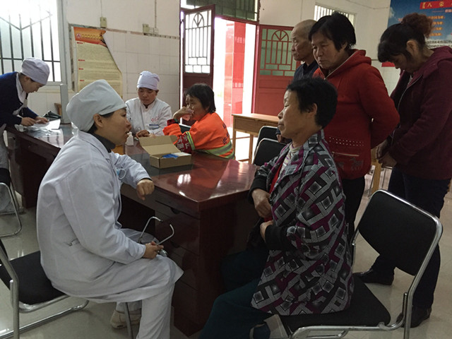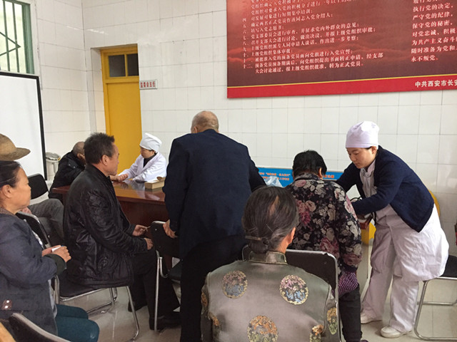 10月31日,秋雨绵绵,陕西省结核病防治院综合内科科主任王亚梅带领几名医护人员应科室出院患者的邀请如约来到东王莽村村委会为这里的老百姓义诊。该村约有村民600余人,听说心脑血管专家来村里义诊,老乡们纷纷冒雨前来就诊,其中以老年朋友居多。综合内科的医护人员免费为村民测量血压、血糖,同时为大家进行高血压、糖尿病的健康知识宣教。王亚梅主任认真仔细地为每一位前来就诊的老乡检查身体、指导安全用药、解答他们的疑问。