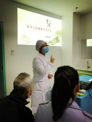 王丽萍王护士长从合理膳食、适量运动、戒烟戒酒、平衡心理等四个方面介绍了老年人的健康生活方式,倡导老年人科学养生,科学生活,科学运动。