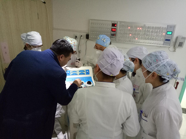 新仪器送达科室,全科人员高度重视,即刻与排痰仪的厂家工程师进行沟通与协调,工程师现场给科室的医护人员进行现场操作培训:针对排痰仪的操作面板控制、简易操作流程、使用频率、定时范围、临床使用注意事项及禁忌症、维护保养等逐一进行解说培训及操作演示,大家听得格外认真,积极地相互在身上进行练习,遇到操作有问题的地方及时得到更正,培训结束时,科室医护人员已经初步掌握排痰仪的使用方法。