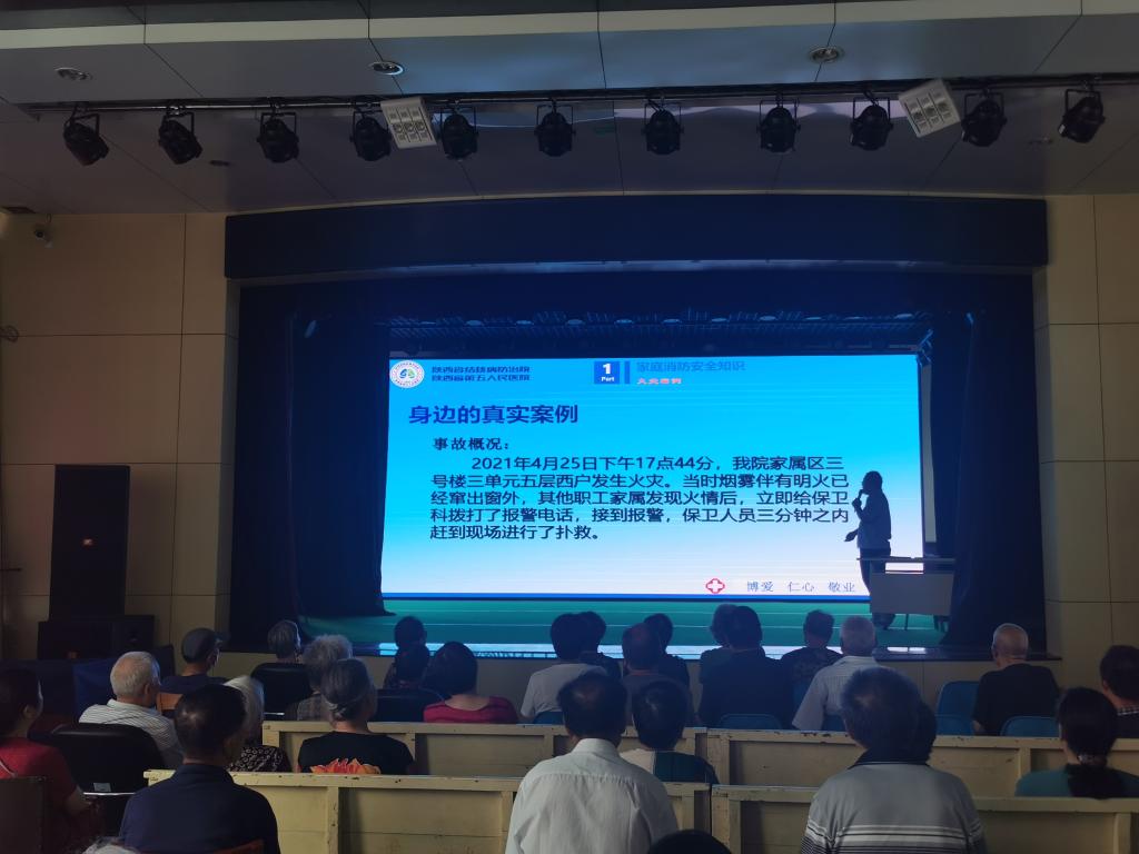 消防安全事关每个人的生命安全,事关职工的平安和幸福,事关社会稳定,事关医院经济发展的大局,做好安全宣传教育培训工作,切实把安全目标、责任、措施落到实处至关重要。现场,保卫科专业消防人员以PPT形式,通过典型火灾事故案例分析,教育大家吸取事故教训,避免类似事故再次发生。还对家庭消防安全知识,导致家庭火灾原因、安全用电用气、初起火灾的扑救方法、灭火器材的使用方法、楼道堆放杂物、占用消防通道的危害以及如何报警、逃生进行了宣教。通过普及与生活中息息相关的安全知识、以及风险防范措施、应急处置和自救等安全常识,进一步提高了职工家属、离退休人员的安全意识和知识能力水平。