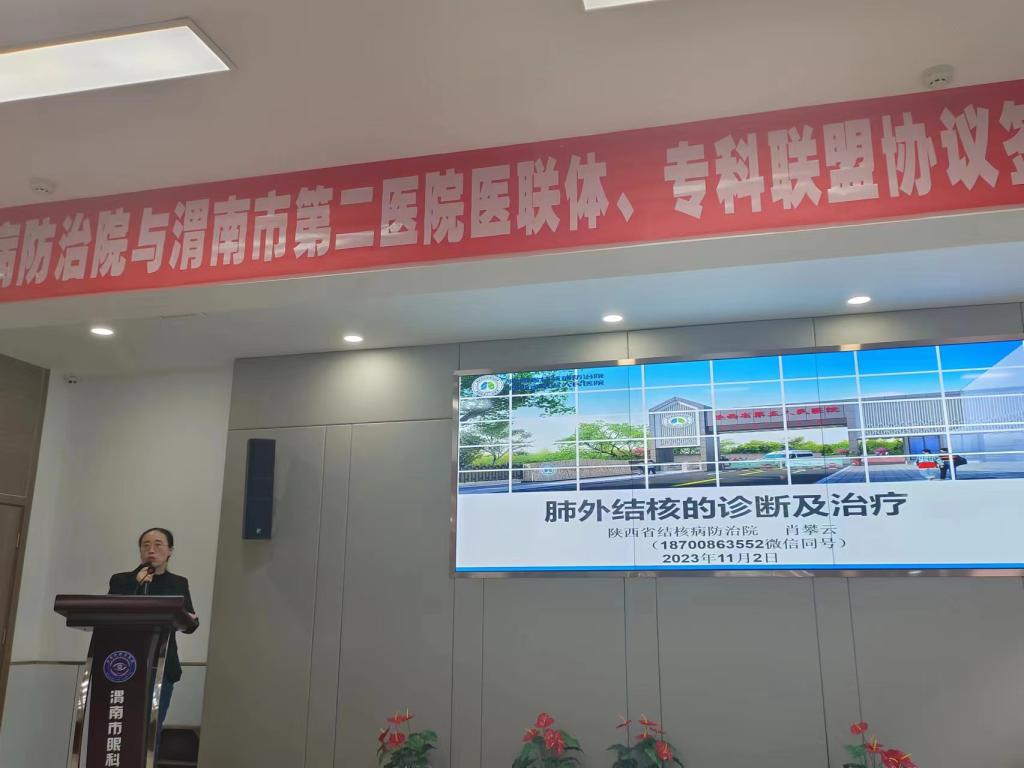 11月2日,内一科吴晓玲副主任、肖攀云副主任受邀前往渭南市第二人民医院开展结核病知识讲座并进行疑难病例答疑,助力提高地方医务工作者结核病鉴别能力,造福广大患者。